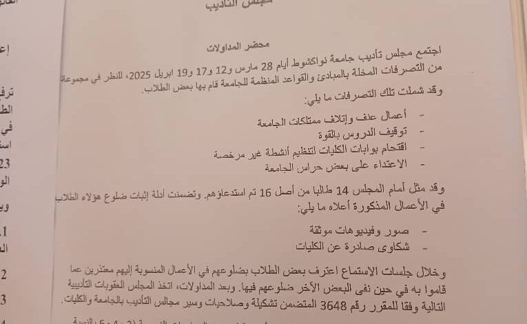 المجلس التأديبي بجامعة نواكشوط يطرد “مؤقتا” 14 طالبا