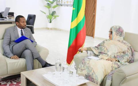 استقبلت وزيرة البيئة والتنمية المستدامة، مسعودة بحام محمد لغظف، اليوم الخميس، ممثل المنظمة الدولية للهجرة في موريتانيا، إدريسا سومباري، حيث بحث الجانبان سبل تعزيز التعاون المؤسسي بين الطرفين.