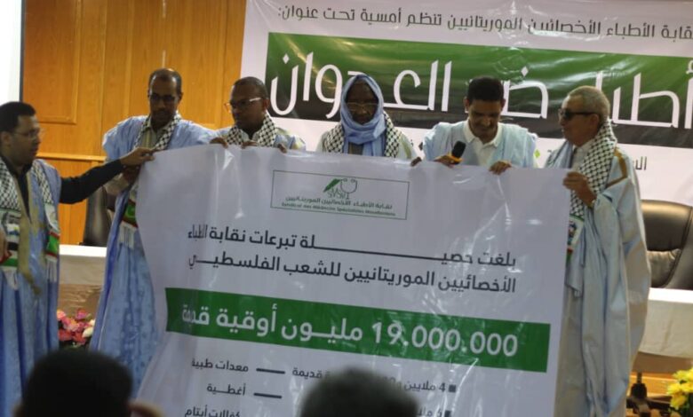أعلنت نقابة الاخصائيين الموريتانيين عن مبادرة “السترة البيضاء من أجل غزة” وذلك ضمن أمسية تضامنية مع غزة نظّمتها النقابة مساء أمس السبت تحت شعار: “أطباء ضد العدوان”.